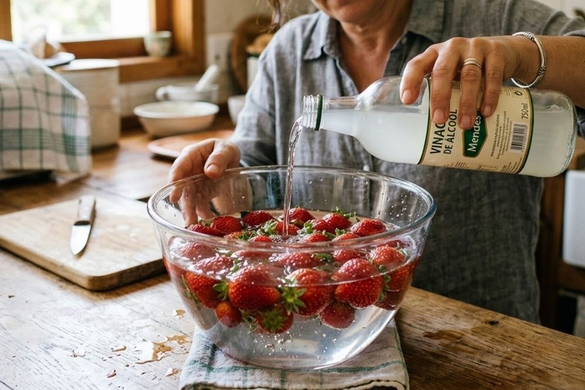 Há, porém, um método doméstico que voltou a ganhar espaço nas cozinhas. O chamado banho de vinagre. A técnica é simples, barata e usa um ingrediente comum da despensa. Quando aplicado da forma correta, o vinagre ajuda a eliminar esporos de mofo e reduz a presença de microrganismos que aceleram a decomposição da fruta.