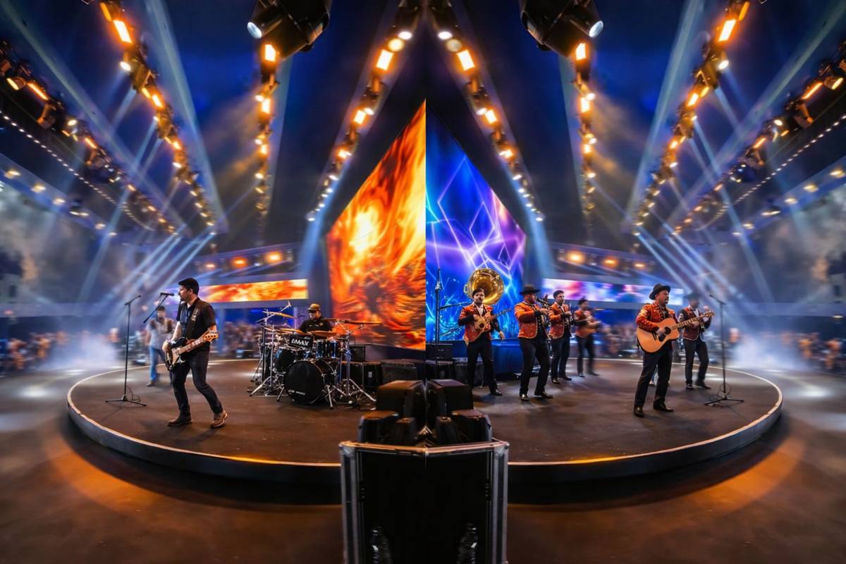 Quando o show acaba, o palco gira… e pronto! A outra banda já entra tocando, sem demora. Tudo acontece bem rápido, em menos de 1 minuto. Assim, o público não fica esperando e a festa continua animada o tempo todo.